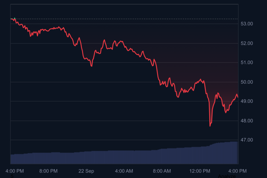 Tak lama setelah penjualan tersebut, harga HYPE turun sekitar 8%, dari lebih $54 menjadi $47 pada perdagangan Senin pagi. Padahal, sejak awal tahun, HYPE sudah naik lebih dari dua kali lipat, bahkan sempat mencapai all-time high (ATH) di $59,30 pada 18 September 2025.