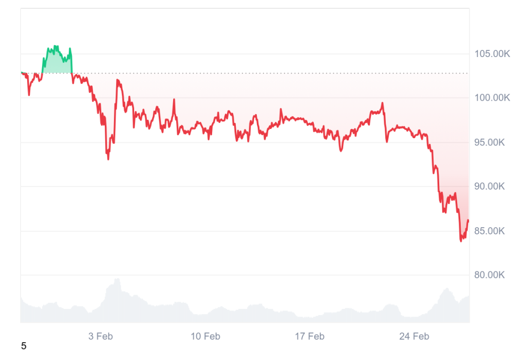Saat artikel ini ditulis, menurut data CoinMarketCap, Bitcoin telah turun 16,45% dalam 30 hari terakhir dan diperdagangkan di level $85.981.