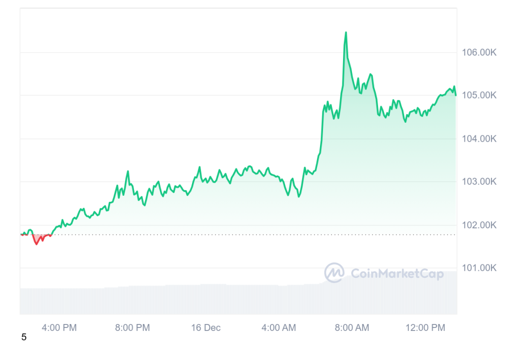 Data CoinMarketCap menunjukkan, saat ini mata uang kripto terbesar di dunia tersebut diperdagangkan di angka $105.053 naik 3,24% dalam 24 jam terakhir.