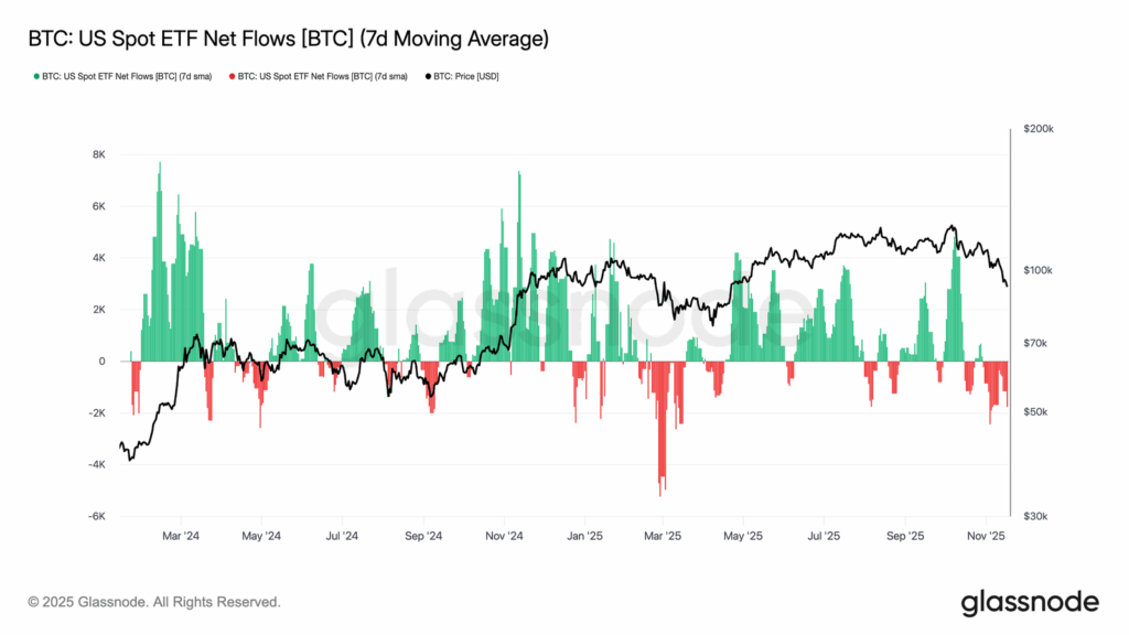 Arus dana exchange-traded fund (ETF) Bitcoin spot di Amerika Serikat (AS) kembali menunjukkan pelemahan minat beli, dengan rata-rata arus masuk berada di wilayah negatif dalam beberapa pekan terakhir. Outflow yang terus-menerus ini menandakan keengganan pelaku pasar institusi, khususnya allocator TradFi, untuk menambah eksposur selama periode penurunan harga saat ini.