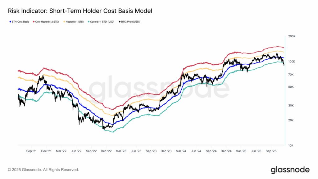 Penurunan hingga $89.000 juga menempatkan harga di bawah level –1 standar deviasi dibandingkan dengan cost basis pemegang jangka pendek atau short-term holder (STH) yang saat ini berada di kisaran $109.500.
