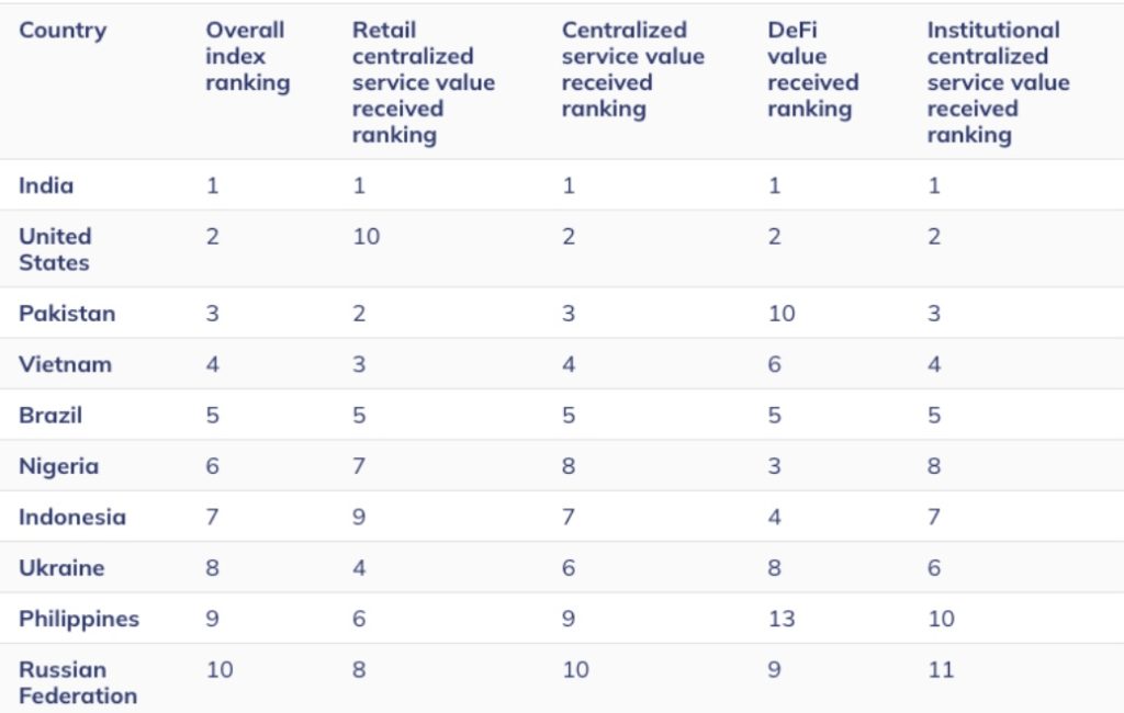 ApeX menjelaskan, pemeringkatan ini didasarkan pada empat indikator, yakni tingkat kepemilikan, pertumbuhan adopsi, aktivitas pencarian, serta ketersediaan ATM kripto.