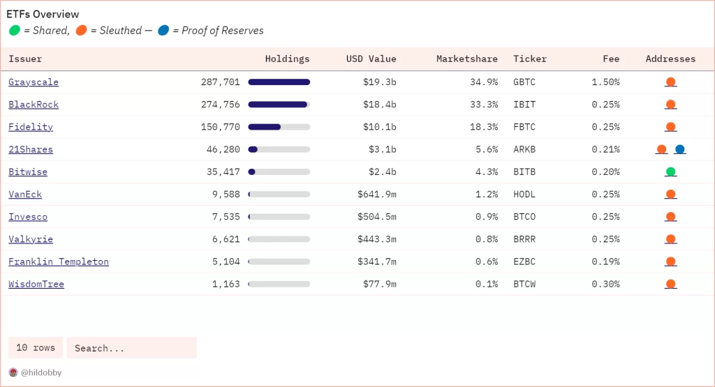 Sebagai perbandingan, menurut data Dune, iShares ETF BlackRock yang berada di posisi terbesar kedua, memiliki lebih dari 274.000 BTC senilai $18.4 miliar, dan memiliki pangsa pasar 33.3%.