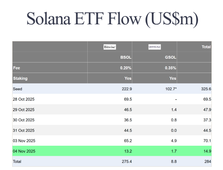 Produk BSOL milik Bitwise dan GSOL milik Grayscale menjadi kontributor utama peningkatan ini, seiring meningkatnya minat investor institusi terhadap aset baru dengan potensi imbal hasil (yield) yang lebih tinggi.