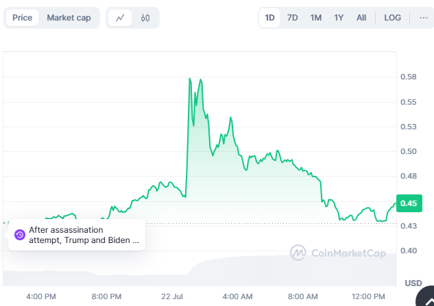 Harga TREMP dan DJT bahkan sempat naik ke titik tertingginya setelah Trump tertembak saat sedang melakukan kampanye di Pennsylvania pada 13 Juli. Tremp naik ke $0,54 sedangkan DJT menyentuh $0,008.