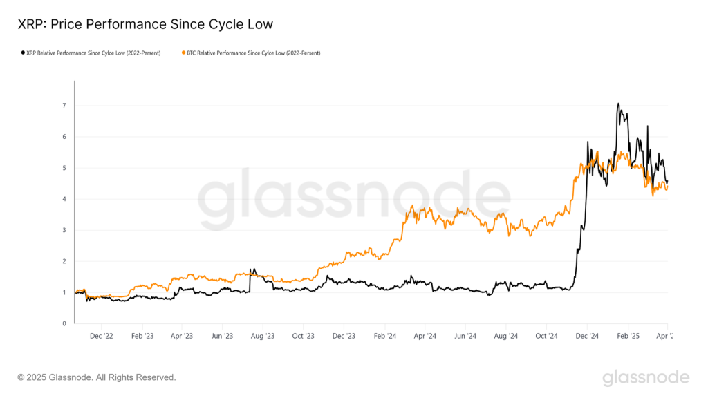 Menurut Glassnode, meski baik Bitcoin maupun XRP sama-sama mengalami kenaikan harga sekitar lima hingga enam kali lipat dari level terendah pada 2022, namun dinamika pergerakannya sangat berbeda.