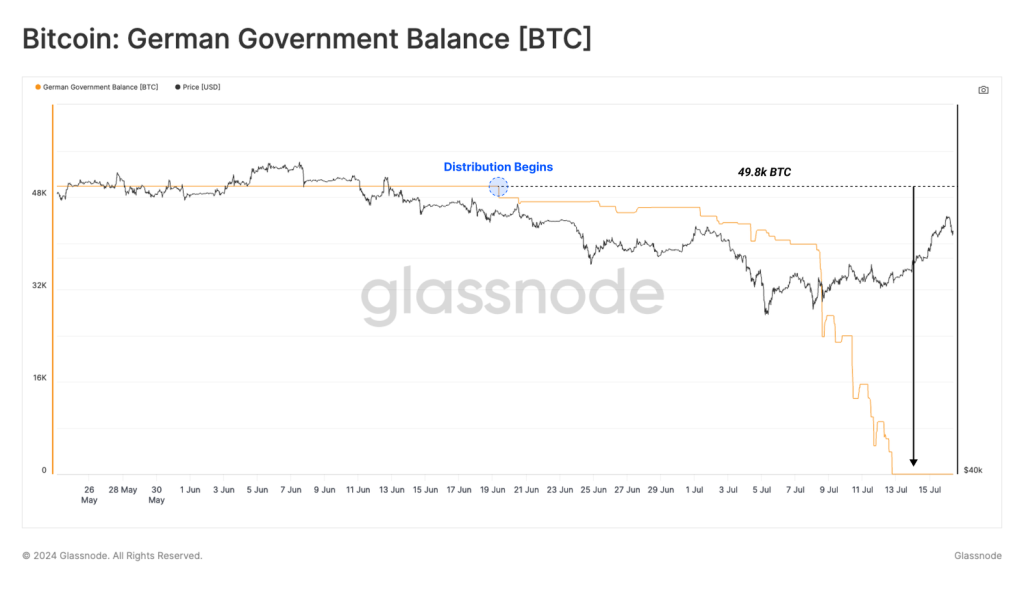Negeri Panzer terpantau menghabiskan 48.800 BTC hanya dalam waktu beberapa pekan. Dana tersebut kebanyakan didistribusikan dalam jangka waktu yang sangat singkat, yakni antara 7 Juli hingga 10 Juli. Saat itu, lebih dari 39.800 BTC mengalir keluar dari wallet Jerman.