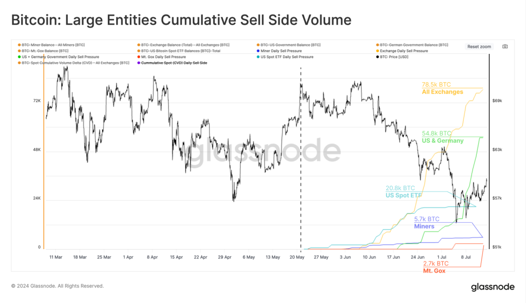 Pasar juga mendapatkan tekanan lainnya yang berasal dari aksi jual Pemerintah AS dan Jerman, yang melepas total 54.800 BTC. Sementara tekanan sisi jual dari penambang ternyata relatif kecil, yakni 5.700 BTC, yang hanya terjadi saat harga mengalami volatilitas tajam.