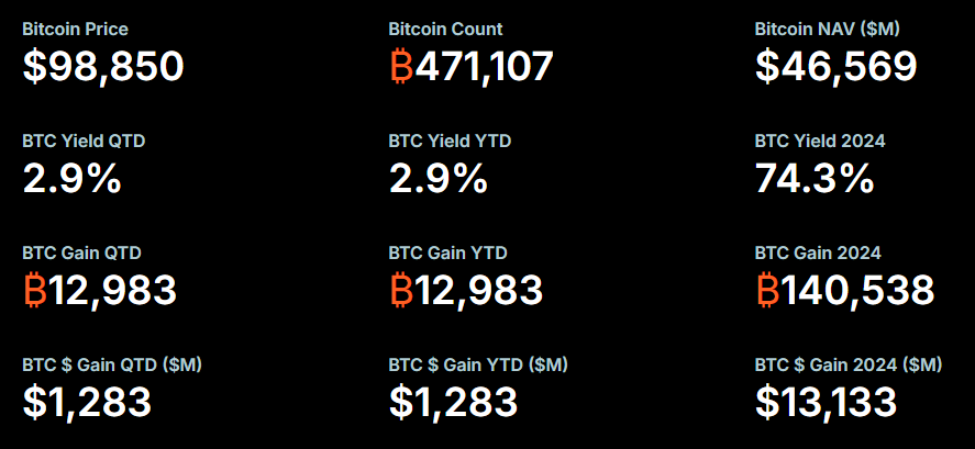 Berdasarkan data dari SaylorTracker, saat ini Strategy memiliki cadangan sebesar 471.107 BTC, dengan nilai lebih dari $45,6 miliar. Strategy telah menjadi perusahaan pemegang Bitcoin terbesar di dunia.