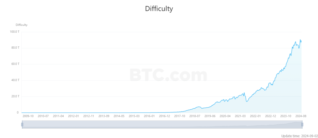 Mining difficulty juga terus meningkat hingga mencapai puncaknya pada Agustus lalu sebesar 89,47 triliun atau naik dari 86,87 triliun pada Juli.