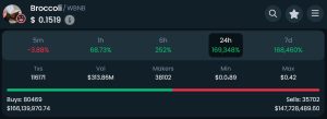 Salah satu memecoin Broccoli yang ada di jaringan BNB Chain bahkan pumping tajam hingga mencapai nilai pasar $500 juta dalam 15 menit awal peluncurannya. Token tersebut kini turun lebih dari 60% dari harga pucuk dengan market cap terkini di kisaran $150 juta.