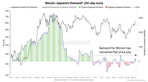 Disitat dari CryptoSlate, laporan firma analitik CryptoQuant yang dirilis 2 Oktober 2024 mencatat lemahnya pertumbuhan permintaan Bitcoin menjadi faktor utama yang menghambat potensi kenaikan harga tinggi di pengujung tahun 2024. Hilal tidak menentunya arah pasar ini dapat dilihat dari pesimisme pelaku pasar yang melihat adanya potensi pivot dari Uptober menjadi Octobear.