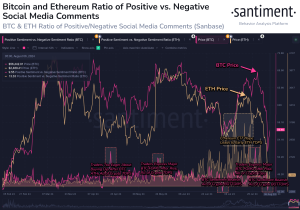 Santiment juga mencatat rasio antara komentar positif dan negatif di media sosial sering kali menjadi indikator yang jelas untuk menentukan titik tertinggi atau terendah suatu aset.